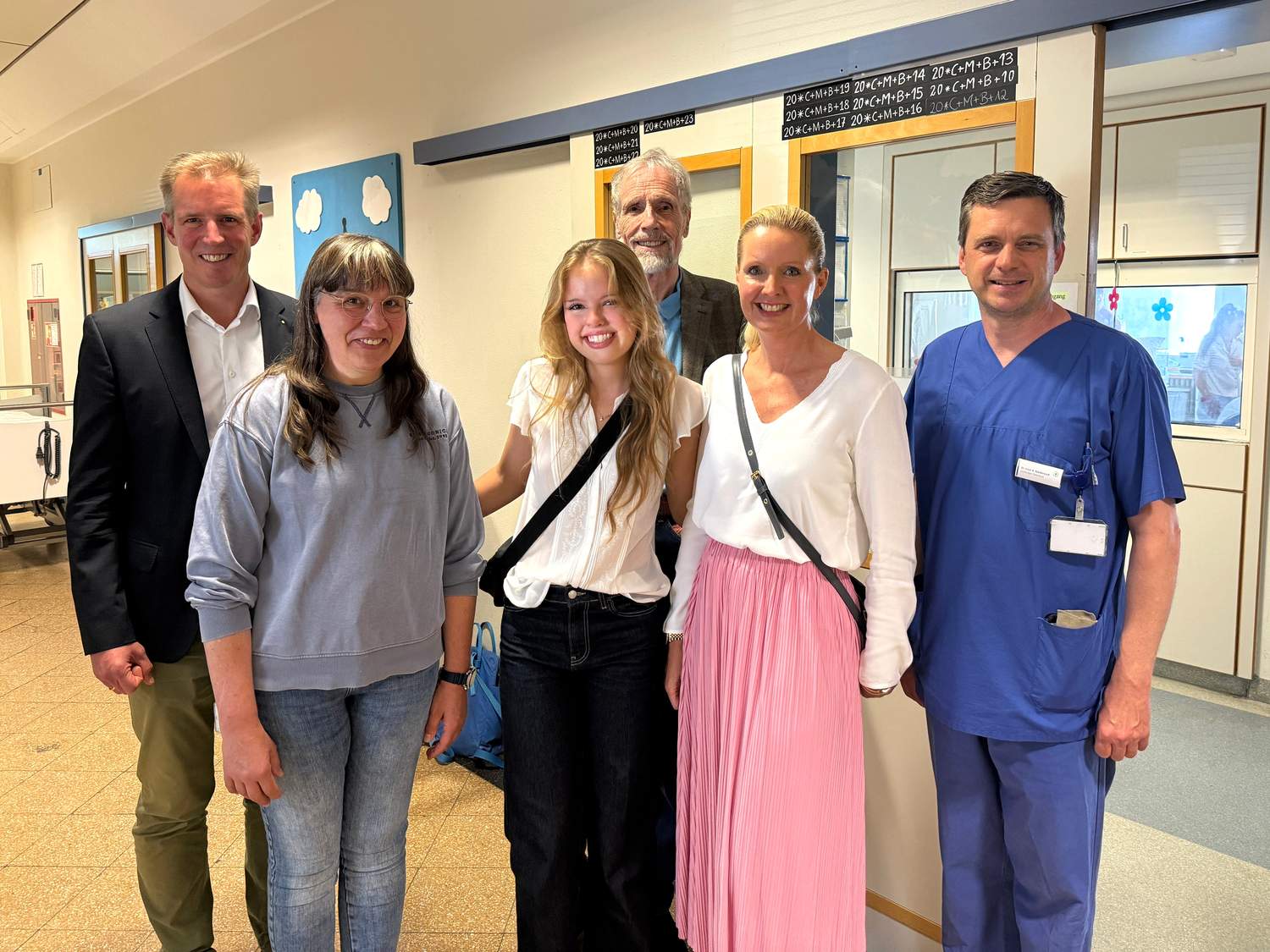 Die Erfahrung der Frühgeburt weckte bei Familie Fiege den Wunsch, die besonderen ersten Wochen im Leben ihrer ältesten Tochter noch einmal Revue passieren zu lassen. Dr. Böckenholt freute sich, die Familie 19 Jahre nach ihrer Entlassung auf der Station begrüßen zu dürfen und von aktuellen Entwicklungen der Neonatologie zu erzählen. Mit dabei waren auch Pflegefachleitung Maria Sturm, die Johanna Fiege während ihrer Zeit auf der Frühgeborenenstation als Pflegekraft betreute und sich noch gut an die Familie erinnern kann, sowie Dr. Ulrich Flotmann. Der damalige Chefarzt der Neonatologie hatte seinerzeit die Verlegung des Kindes nach Münster organisiert und vor seinem Eintritt in den Ruhestand im Jahr 2013 auch die komplikationslosen Geburten der drei weiteren Geschwister miterlebt.