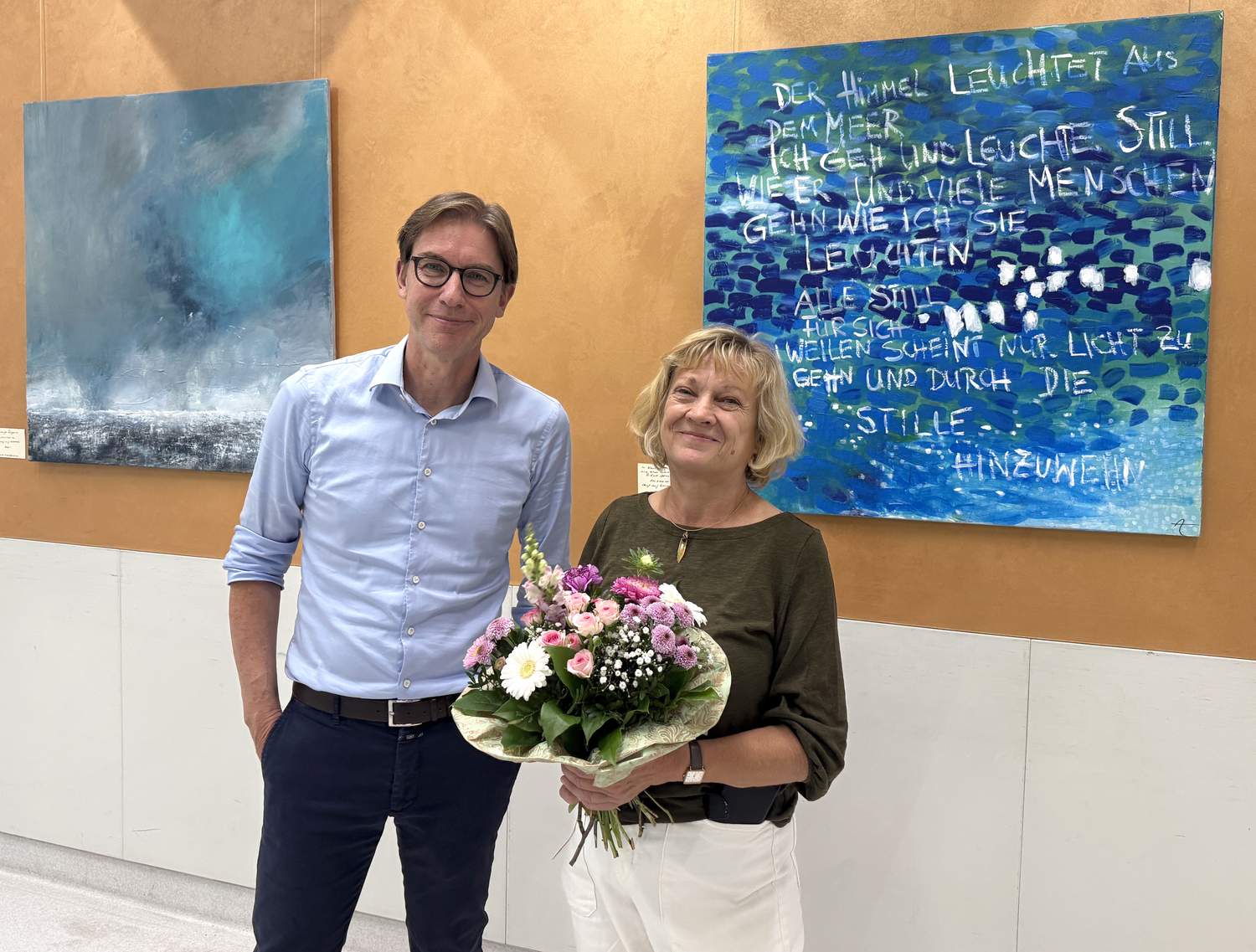 Prof. Dr. Christoph Bremer, Chefarzt der Klinik für Radiologie, freut sich über die Ausstellung: „Die Werke von Frau Liebsch bereichern unsere Klinikflure und laden Patienten, Besucher und Mitarbeitende dazu ein, innezuhalten und neue Perspektiven zu entdecken.“