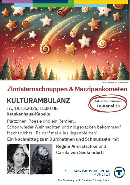 Die Vorweihnachtszeit ist oft geprägt von Hektik und hohen Erwartungen. Ob raffinierte Plätzchen, kunstvolle Verpackungen oder das alljährliche Üben von Weihnachtsliedern – an diesem Nachmittag darf alles einmal liegenbleiben. Die KulturAmbulanz bietet eine humorvolle Auszeit vom Trubel, lädt zum Schmunzeln ein und lenkt den Blick auf die kleinen Freuden der Adventszeit.